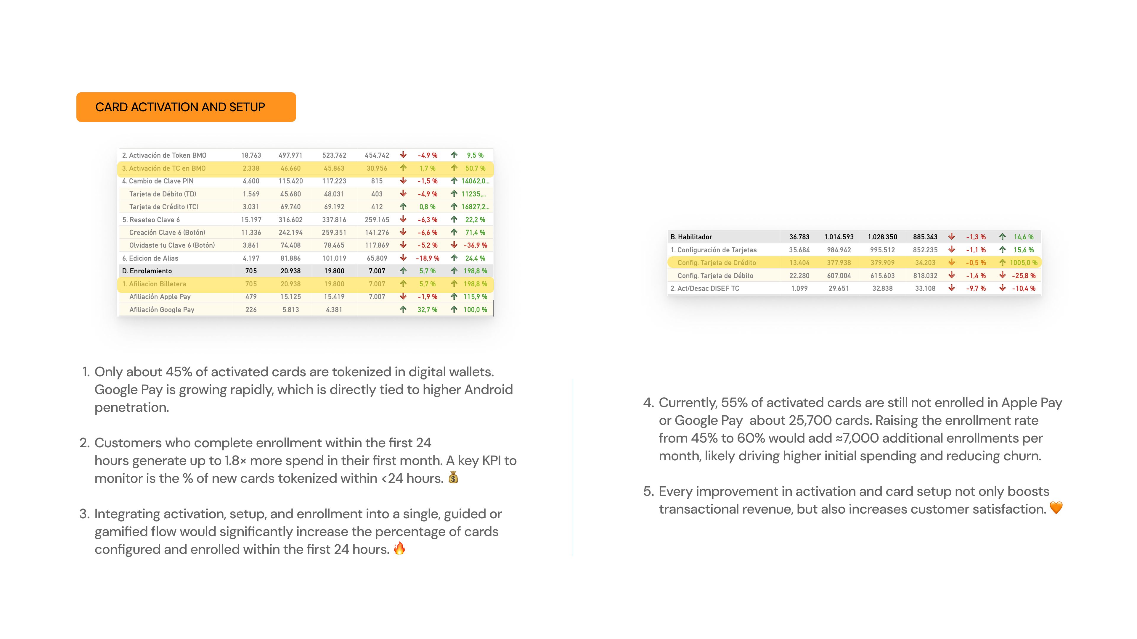 If the card experience were redesigned as a connected, guided, and scalable flow integrating acquisition, activation, and initial usage friction would be reduced, digital conversion would increase, customer satisfaction would improve, and operational load on the call center would decrease.