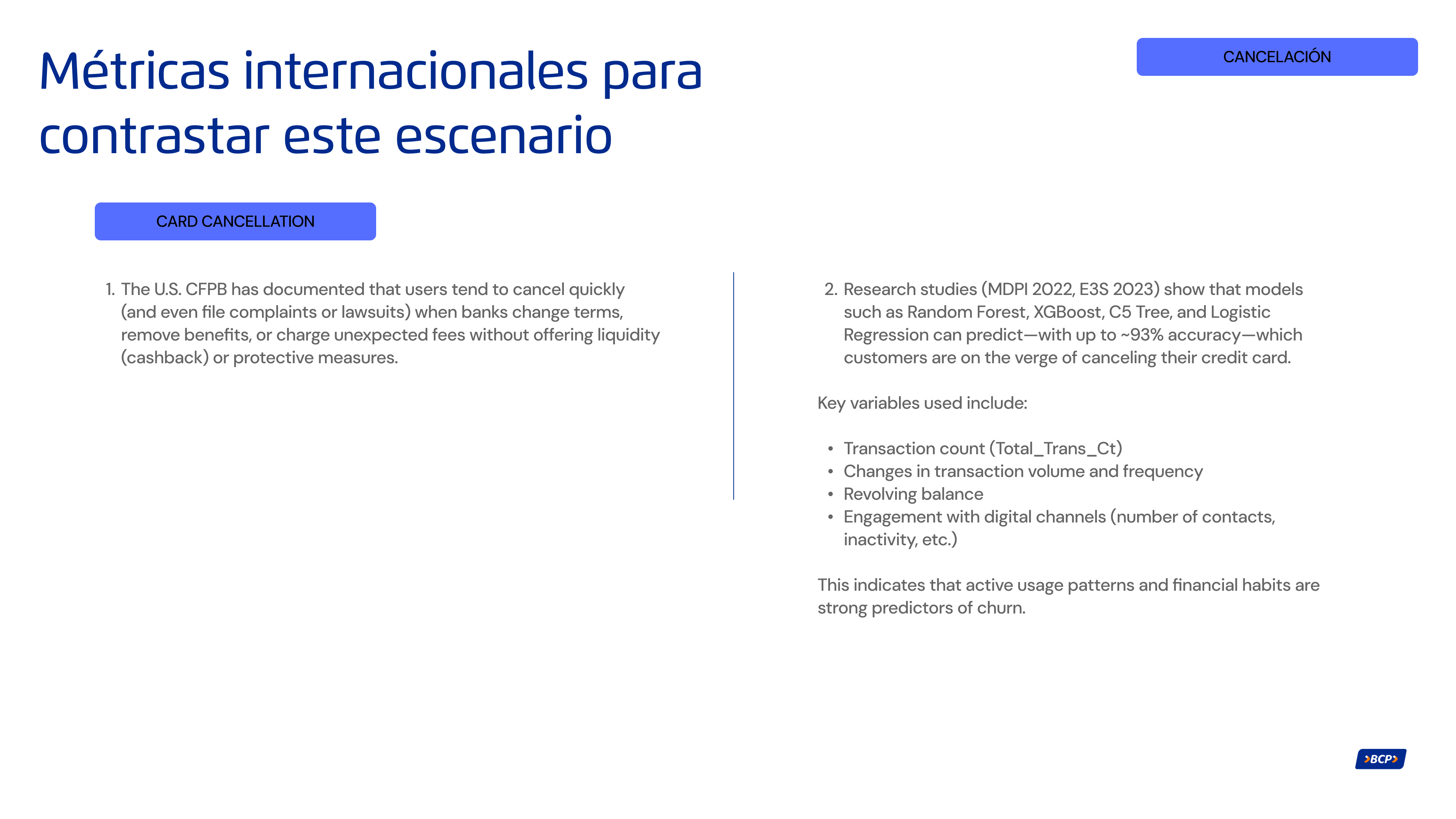 This includes displaying alternatives such as temporary freezing, card downgrade, or blocking due to theft before completing the cancellation flow; offering personalized retention options based on the customer’s specific reason; and activating proactive alerts in response to risk behaviors (such as low usage or upcoming fees).