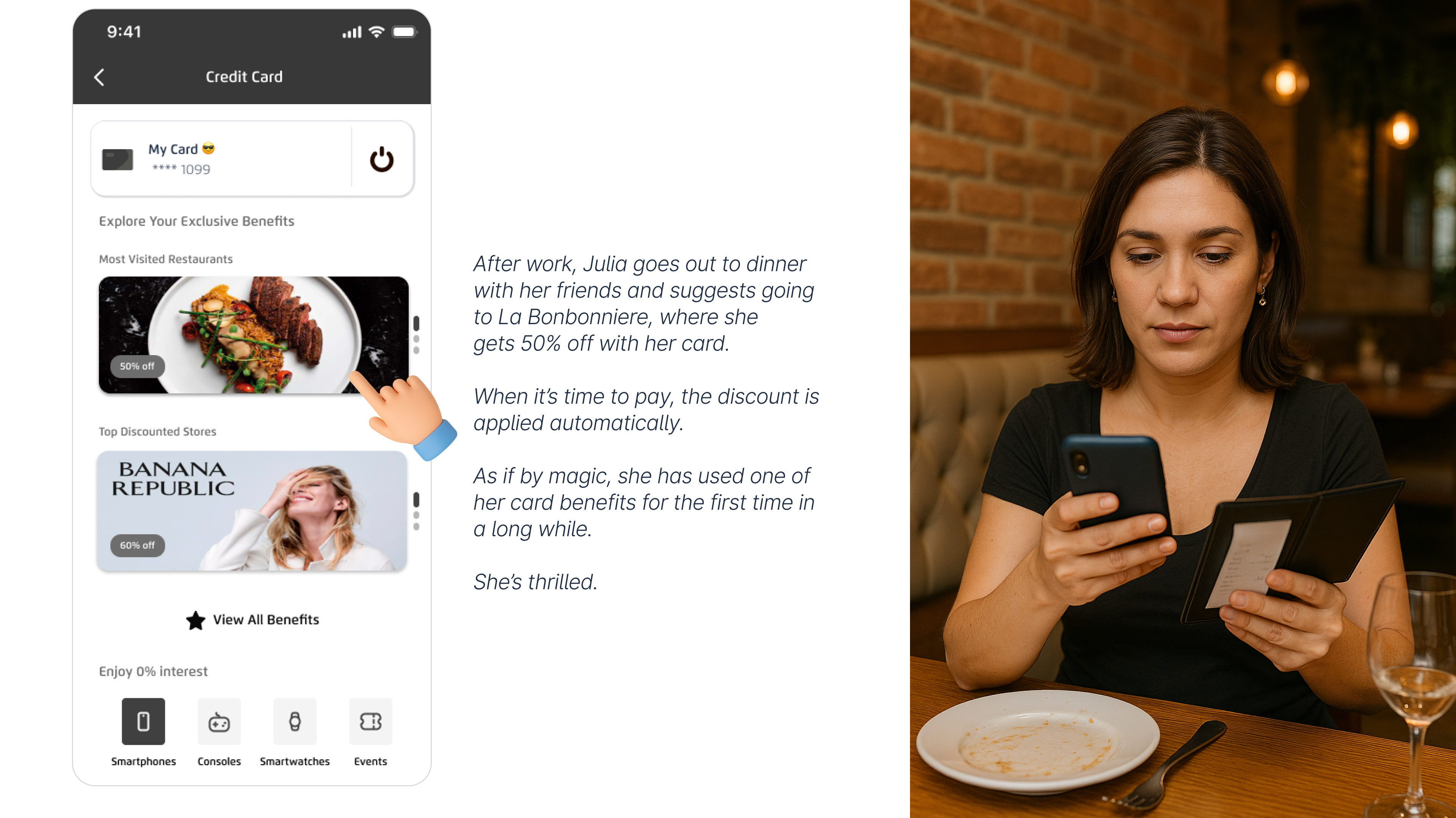 This will help customers understand and take advantage of the card’s real value, increasing loyalty and driving more frequent usage.